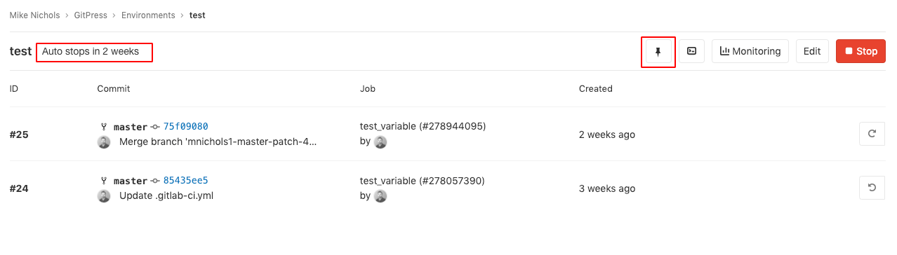 $CI_ENVIRONMENT_NAMEvariable will be updated with the new environment name. -