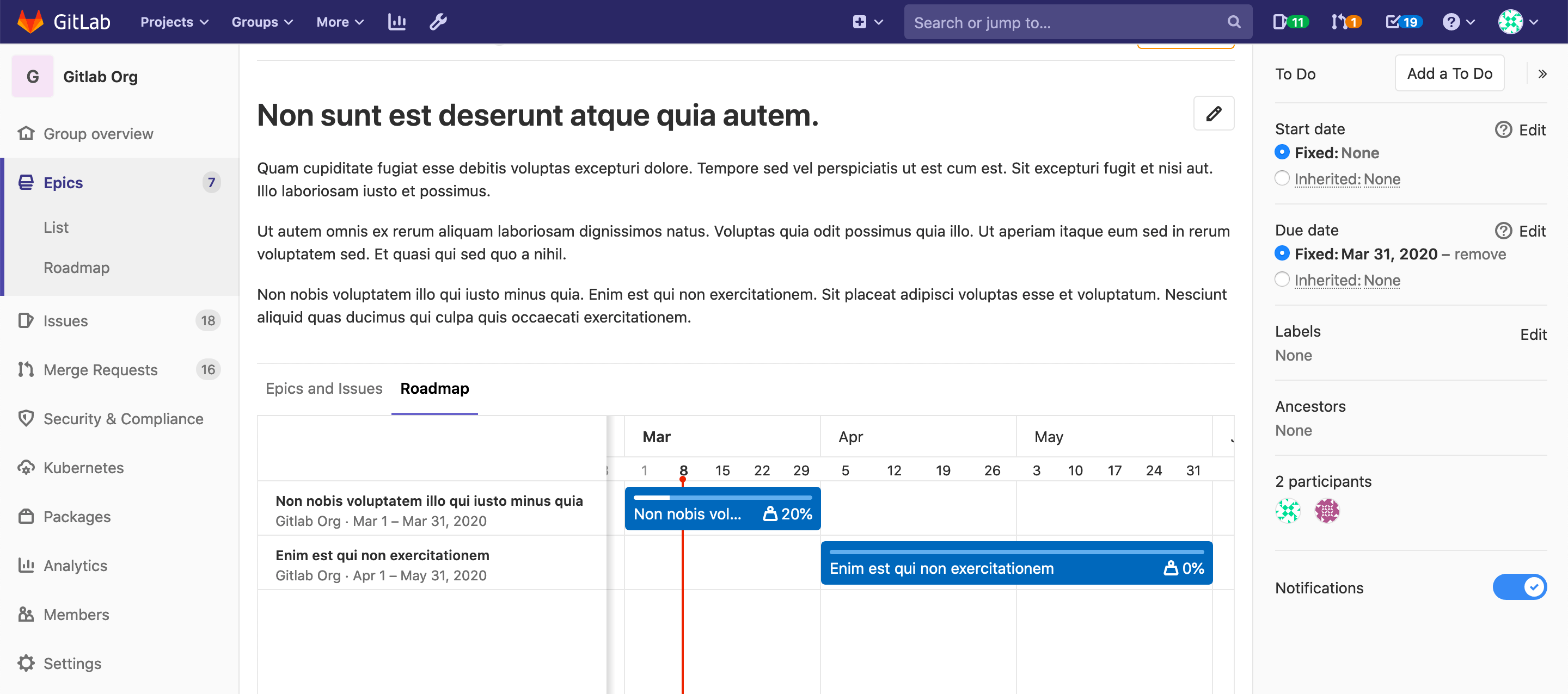 - Comments: collaborate on that epic by posting comments in its thread. These text fields also fully support GitLab Flavored Markdown.