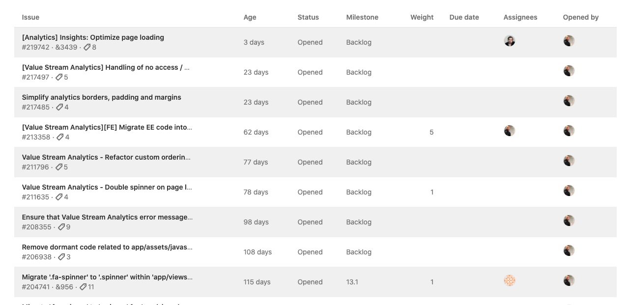 To narrow the scope of issues included in the graph, enter your criteria in the Search or filter results... field. Criteria from the following list can be typed in or selected from a menu:
