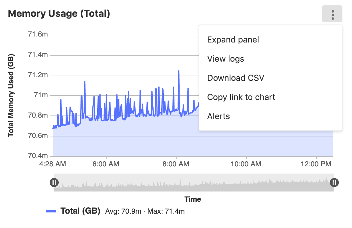 $__interval,$__from, and$__toare currently supported. Toggle On the "Current time range" option to specify the time range of the chart. Otherwise, the default range will be the last 8 hours.