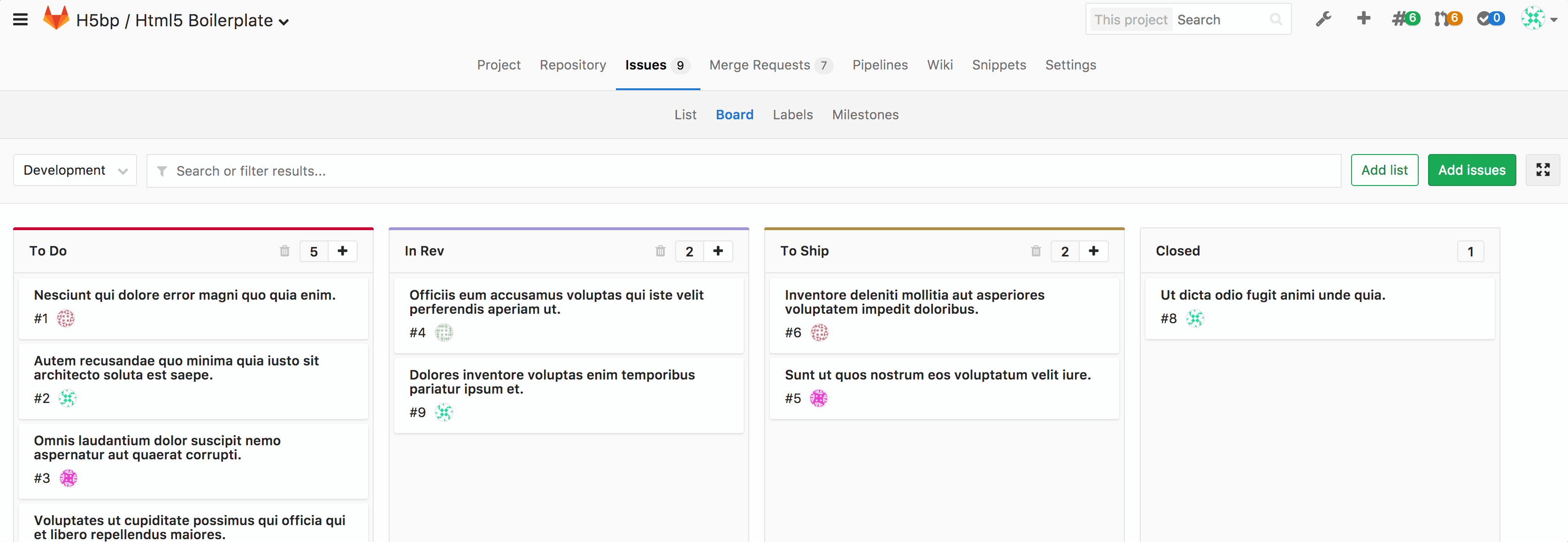 With issue boards you can have a different view of your issues while maintaining the same filtering and sorting abilities you see across the issue tracker. An issue board is based on its project's label structure, so it applies the same descriptive labels to indicate placement on the board, keeping consistency throughout the entire development lifecycle.