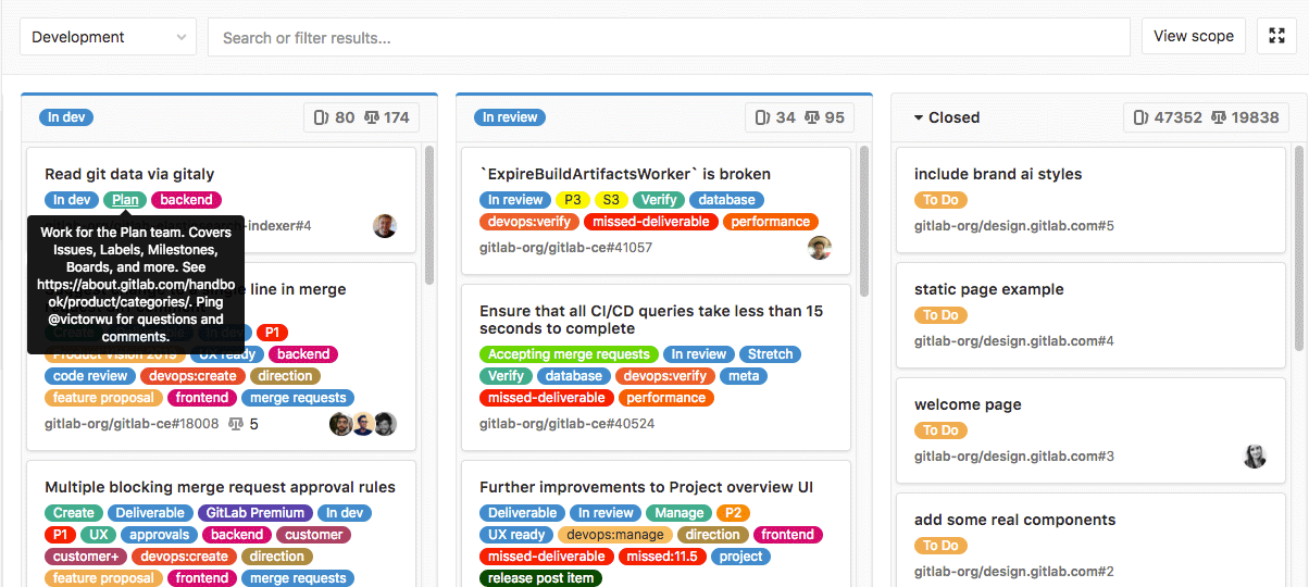 To learn how GitLab's Strategic Marketing department uses GitLab issues with labels and issue boards, see the video on Managing Commitments with Issues.