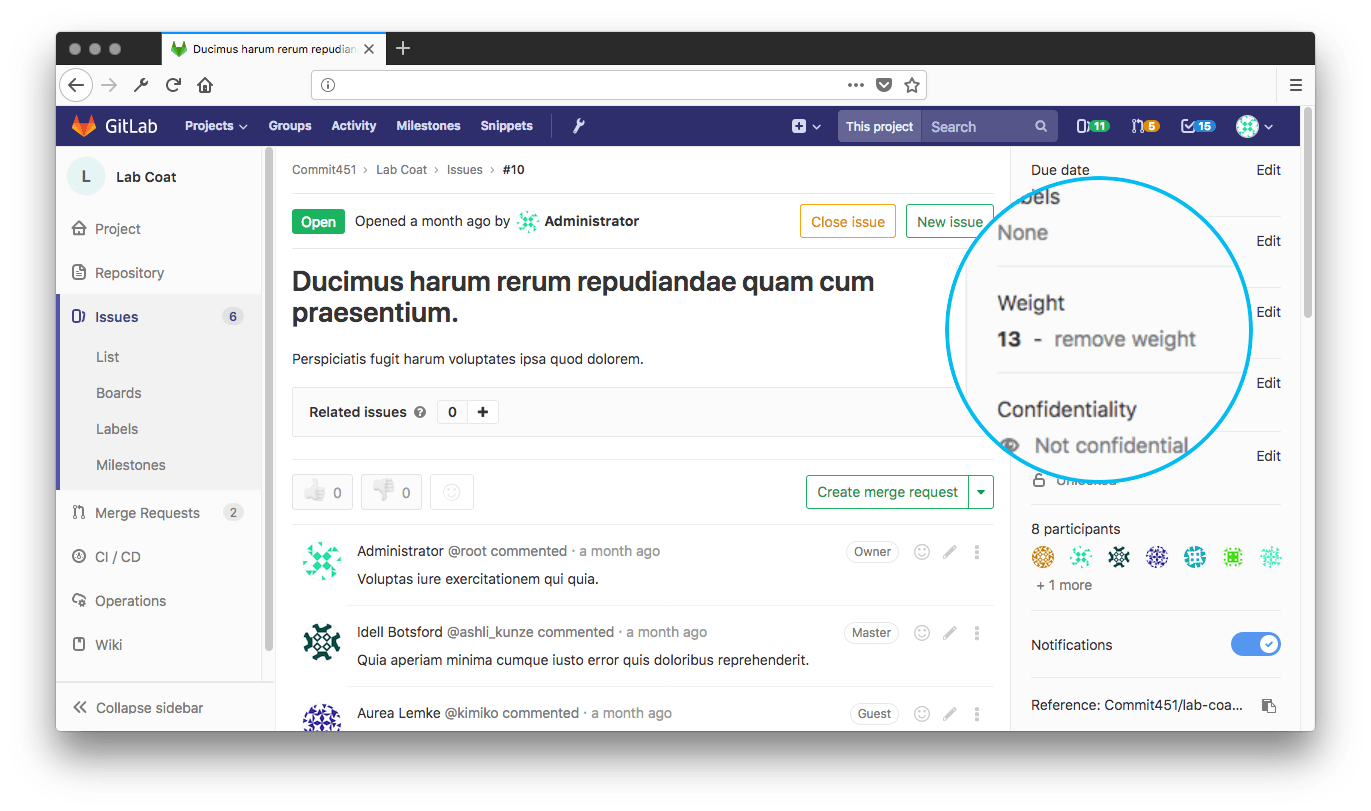 When you have a lot of issues, it can be hard to get an overview. By adding a weight to each issue, you can get a better idea of how much time, value or complexity a given issue has or will cost.