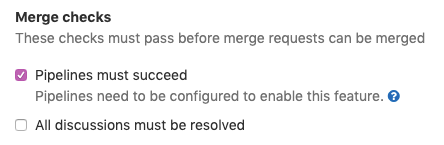 - In the Merge checks subsection, select the Pipelines must succeed checkbox.
