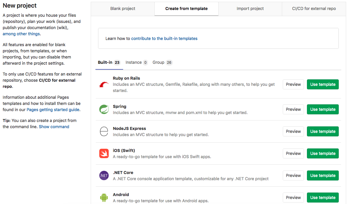 Use a template when you want to test GitLab Pages or start a new project that's already configured to generate a Pages site.
